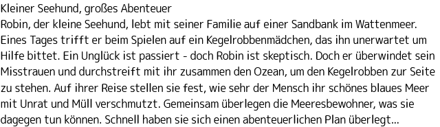 Frau Reitmeyer las den Kindern ihr Buch "Robin, der kleine Seehund" vor.Gemeinsam schauten sie sich die selbst gestalteten Illustrationen an und sprachen über das Thema "Müll im Meer".